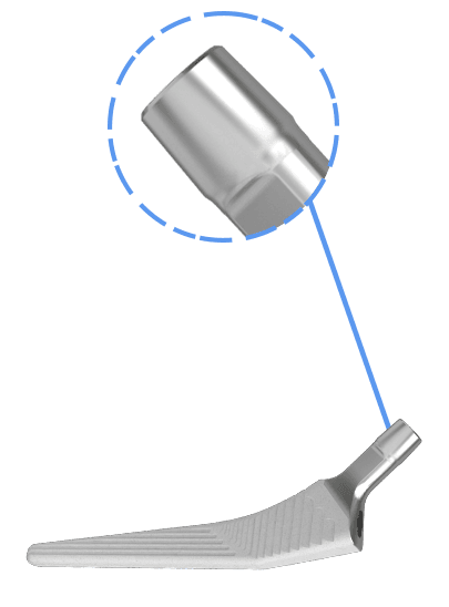 Шейка бесцементного бедренного компонента имеет стандартную конусность 12/14 для соединения с модульной бедренной головкой.